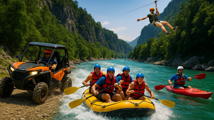 Bu özel turda katılımcılar bir gün boyunca rafting, jeep safari, zipline ve buggy ya da ATV safari aktivitelerinin tamamına dahil oluyor. Alanya’ya yaklaşık 100 kilometre mesafede bulunan Köprülü Kanyon, etkileyici doğası, tarihi yapıları ve serin sularıyla bu deneyime mükemmel bir ev sahipliği yapıyor.