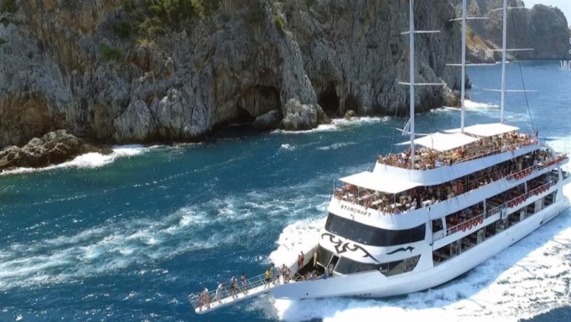 Eğlencenin yanı sıra Starcraft Tekne Turu’nun rotası da oldukça zengindir. Alanya limanından ayrılan tekne; ilk olarak 13. yüzyıldan kalma tarihi Selçuklu Tersanesi önünde kısa bir yüzme molası verir. Buradan sonra Alanya’nın efsaneleriyle anılan deniz mağaralarına doğru yol alınır: