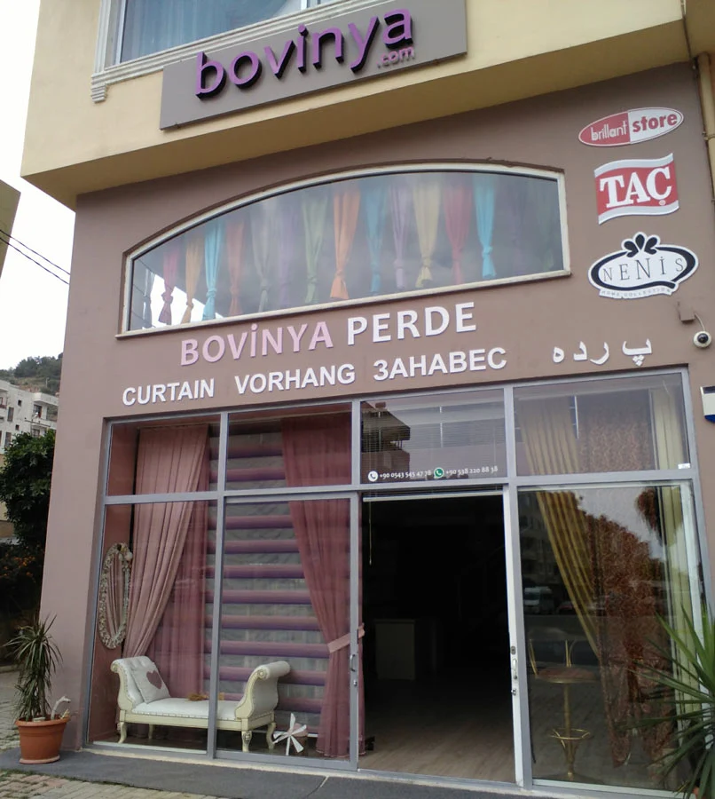 Bovinya Perde, Alanya merkezli perde ve ev tekstili sektöründe hizmet veren köklü bir işletmedir. Kuruluşundan bu yana kalite, güven ve müşteri memnuniyetini ön planda tutmaktadır.