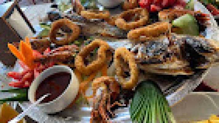 - Deniz ürünleri: Karides, kalamar, levrek, çipura